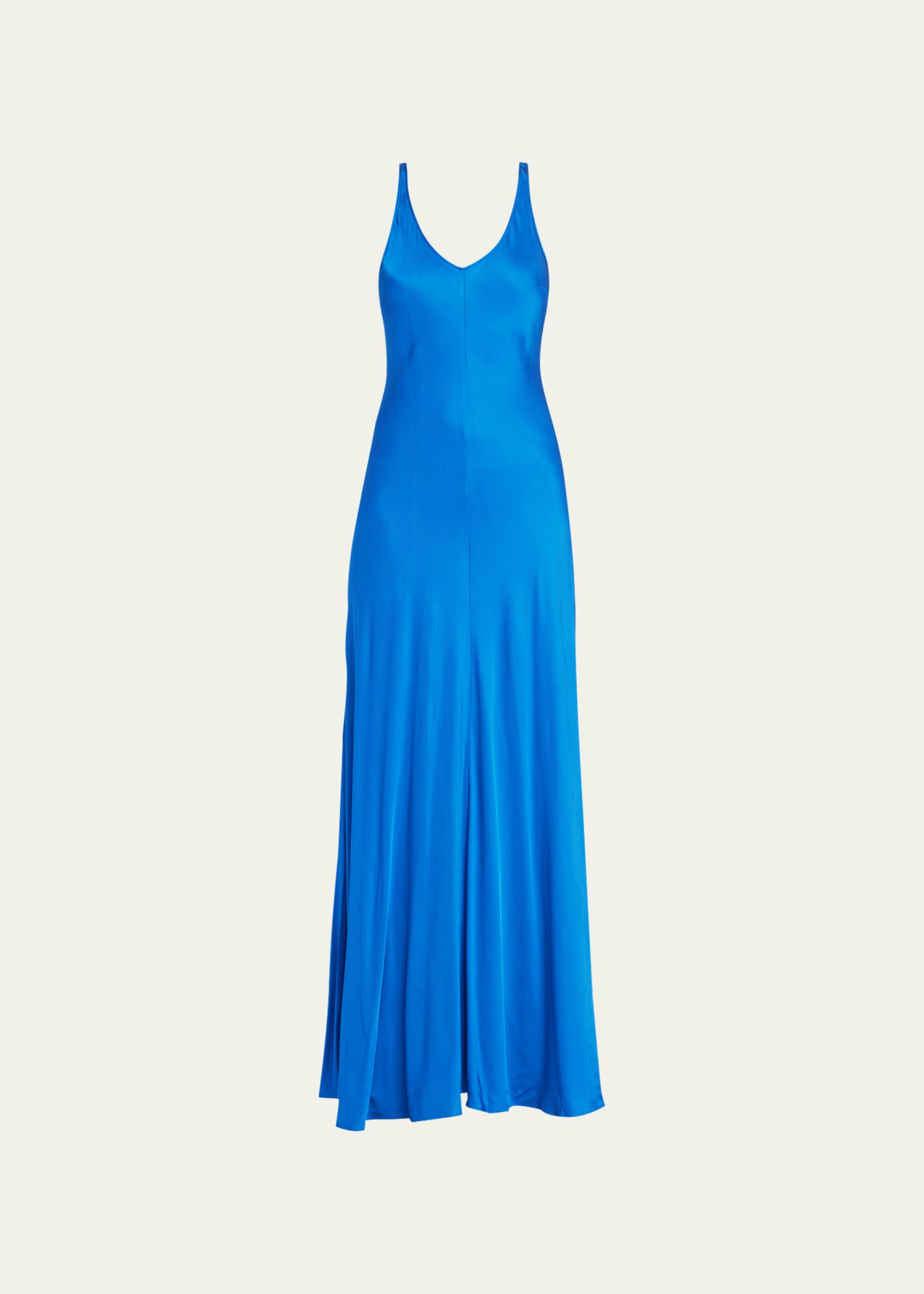 L'Agence "Clea" satin slip dress accentuates curves, creating an hourglass silhouette with its bias cut design Double scoop neckline Sleeveless Column silhouette Full length Slipover style Rayon/viscose Imported