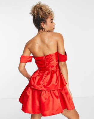 Collective the Label exclusive valentines bardot ruched mini dress in red