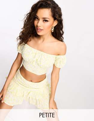 Collective the Label Petite bardot crop top in ditsy lemon floral - part of a set-Yellow