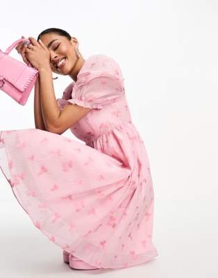 Collective the Label puff sleeve smock dress in pink floral brocade
