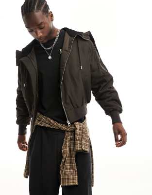 COLLUSION bomber jacket with zip hood detail in brown