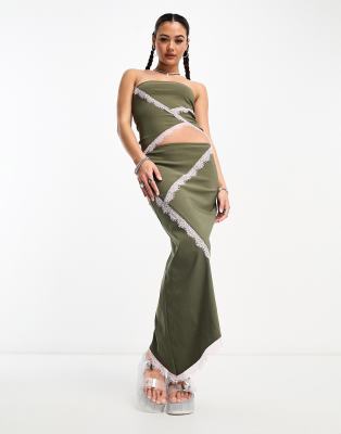 Skirts by Collusion Exclusive to ASOS Low rise Elastic waist Lace trim Asymmetric hem Slim fit