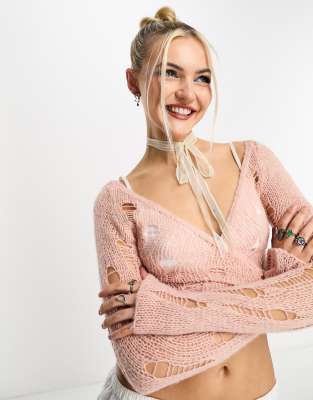 Sweaters & Cardigans by Collusion Exclusive to ASOS V-neck Tie closure Long sleeves Cropped length Regular fit
