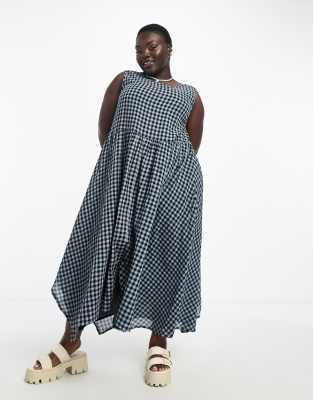 Dress by Collusion Exclusive to ASOS Round neck Sleeveless style Open back Button-keyhole back Regular fit