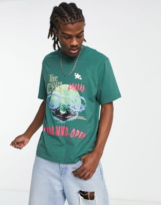 Coney Island Picnic mind open t-shirt in washed green with graphic print