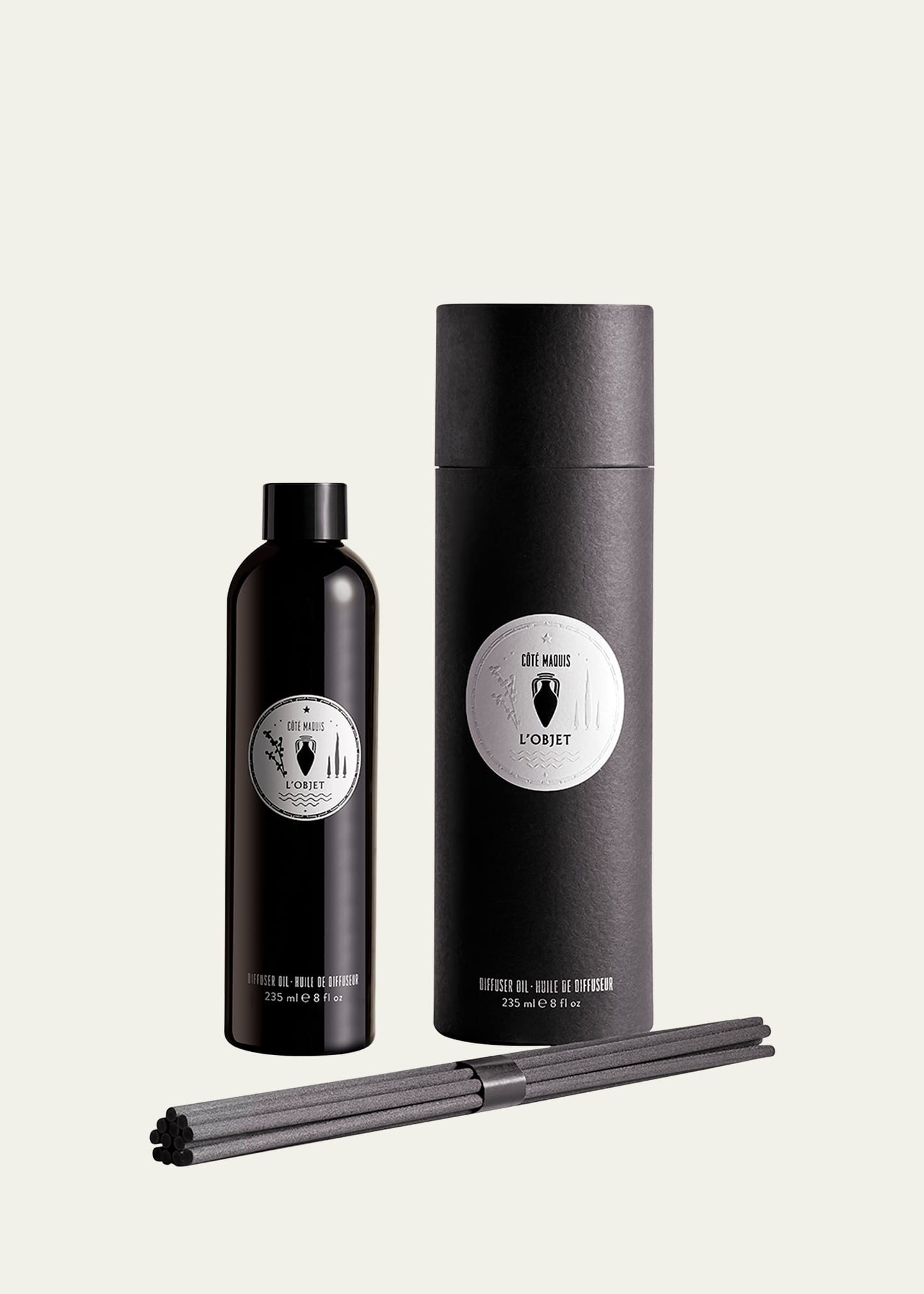 L'Objet Cote Maquis Apothecary Diffuser Oil + Reeds Refill, 8 oz. The refill set contains a refresher oil and reeds for when your diffuser needs replenishment. The L'Objet Apothecary collection transforms ordinary rituals into extraordinary escapes. A modern take on age-old Mediterranean traditions, Europe's beauty artisans and L'Objet house perfumer Yann Vasnier use natural ingredients to formulate rich fragrances and bathing experiences to invigorate the body and mind. &nb.