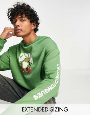 Crooked Tongues oversized sweatshirt with chillin' toad graphic print in green