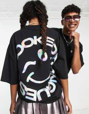 Crooked Tongues Unisex oversized t-shirt with large iridescent back print in black