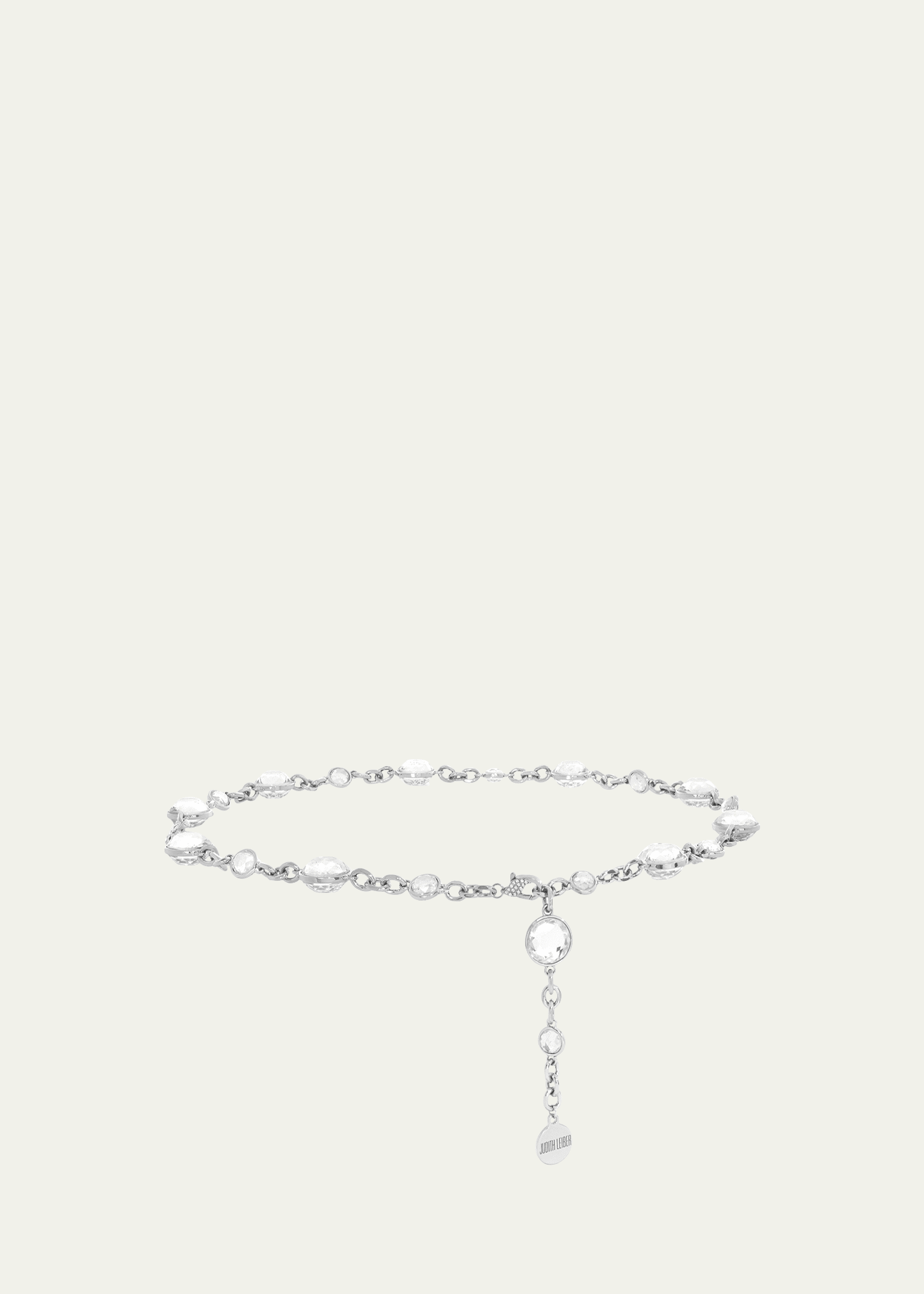 Judith Leiber Couture brass chain belt with glass crystals Approx. 38"L Adjustable fit Lobster clasp closure Care instructions: To ensure years of satisfaction, do not subject your product to extreme temperatures. If an item should be exposed to rain, please wipe carefully with a soft cloth to minimize any markings that may occur. Imported