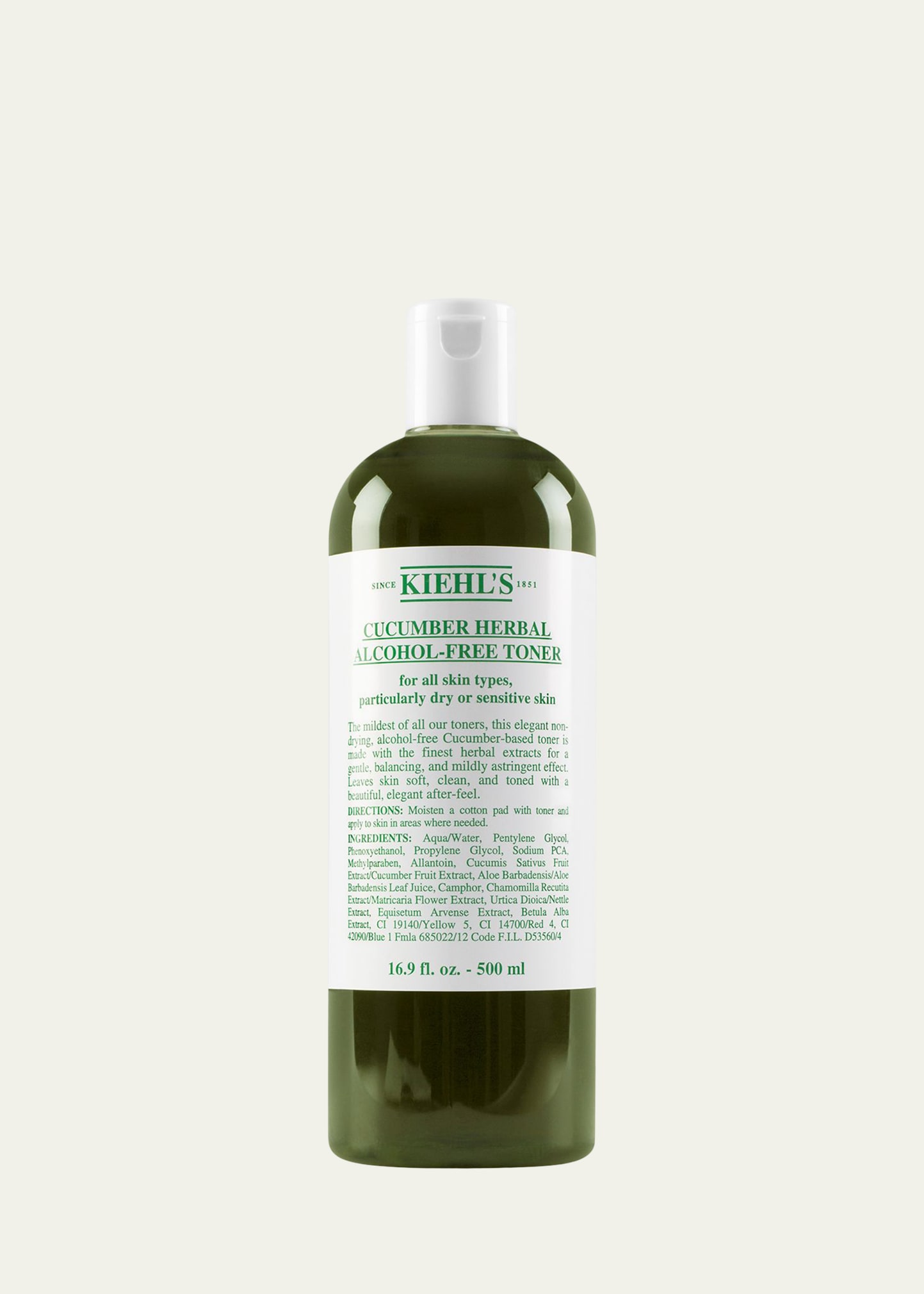 Kiehl's Since 1851 Cucumber Herbal Alcohol-Free Toner, 16.9 oz. A mild toner infused with herbal extracts. Infused with the finest herbal extracts, this gentle facial toner has a mild astringent effect and helps to leave skin soft and clean. The mildest of all of Kiehl's toners, it gently balances skin and leaves it with an elegant after-feel. Who it is for: Dry, Sensitive, All Skin Types Solutions for: Dryness, Acne / Blemish Active Ingredients: Allantoin: Allantoin is a compound that is fou.