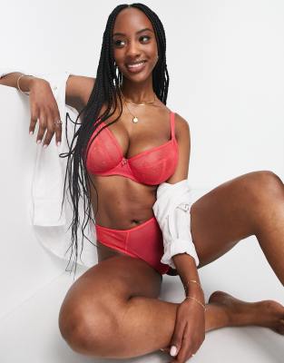 Curvy Kate Fuller Bust Cherry Pop embroidered mesh plunge bra in pink