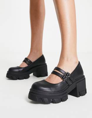 Shoes by Daisy Street Dress from the feet up Pin-buckle fastenings Round toe Chunky sole