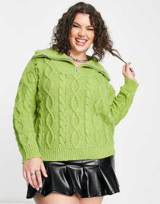 Daisy Street Plus cable knitted sweater with collar in Green