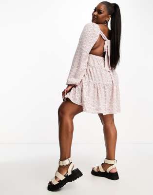 Daisy Street Plus tie back tiered mini tea dress in vintage ditsy-Multi
