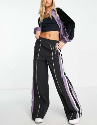 Daisy Street wide leg skate track pants in purple - part of a set-Multi
