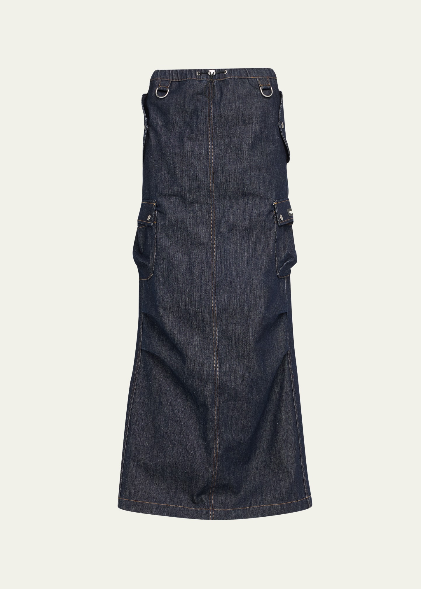 Coperni denim skirt High waist Drawcord waist Cargo pockets A-line silhouette Full length Pull-on style Cotton Cotton/polyester lining Made in Italy