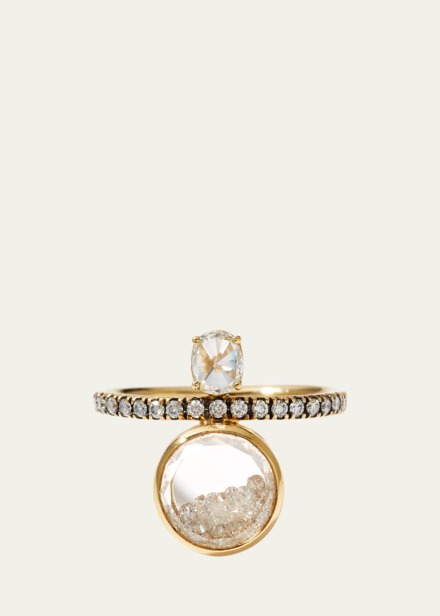 Moritz Glik ring in 18-karat yellow gold Prong-set and free-floating diamonds Double white sapphire enclosure Diamond total carat weight: 1.27 Made in USA