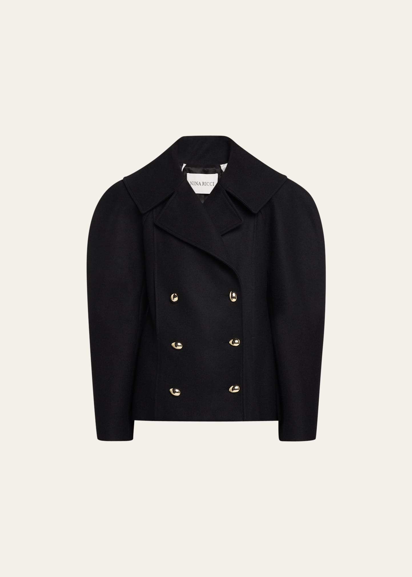 Nina Ricci double breasted peacoat Notch lapels Long sleeves Side slip pockets Cocoon fit Cropped length Wool/nylon/polyamide/cashmere Made in Romania
