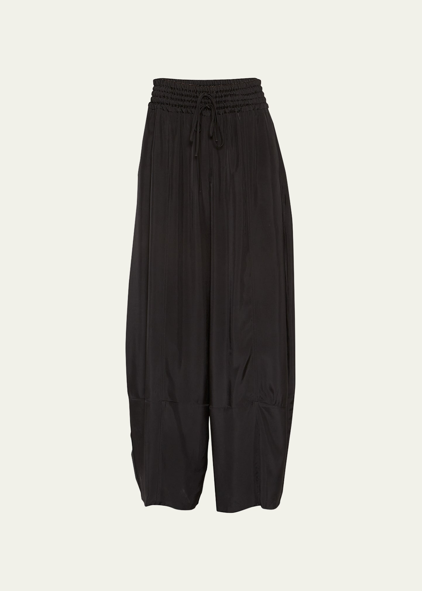 Jil Sander voluminous pants High rise Elastic drawstring waistband Side slip pockets Wide legs Full length Step-in style Viscose Made in Italy
