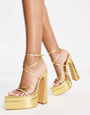 Shoes by EGO Level up Strappy design Adjustable ankle strap Pin-buckle fastening Open toe Platform sole High block heel