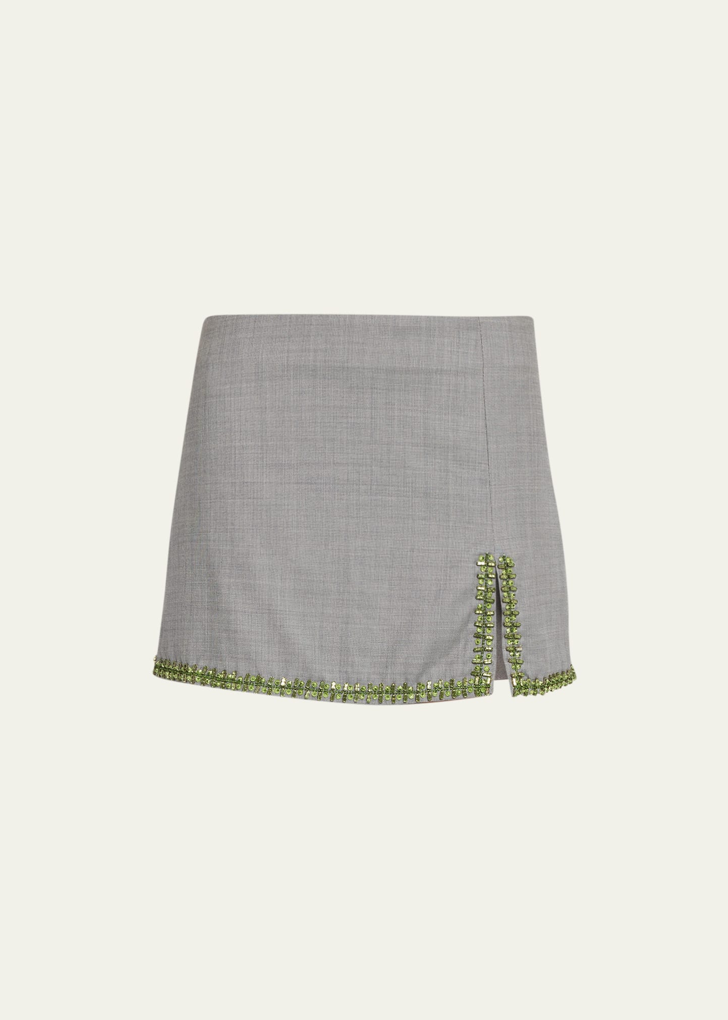 Des Phemmes wool mini skirt featuring embellished trim Mid-rise Skirt falls straight from hip to hem Split hem Wool Dry clean Made in Italy