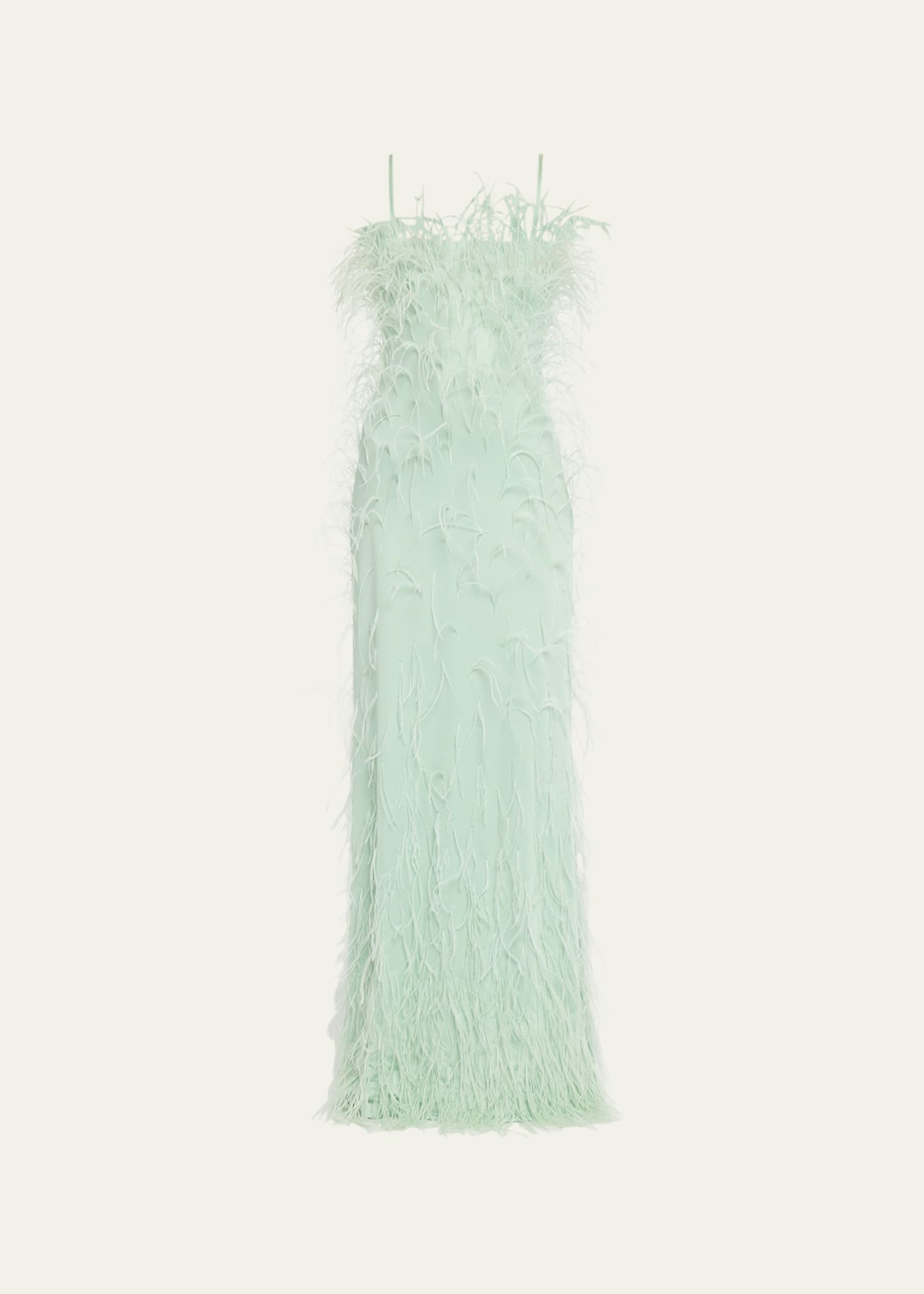 Givenchy gown features feather details embroidered throughout Square neckline Sleeveless; spaghetti straps Concealed back zip Full length Column silhouette Viscose/nylon Made in France