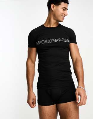 Underwear & Socks by Emporio Armani Includes a T-shirt and trunks Logo print Slim-fit t-shirt Crew neck Regular trunks