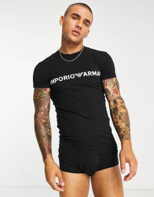 Loungewear Sets by Emporio Armani Includes a T-shirt and a pair of trunks Regular-fit T-shirt Crew neck Short sleeves Logo print on chest Matching trunks Elasticized waistband Branded taping Form-fitting cut