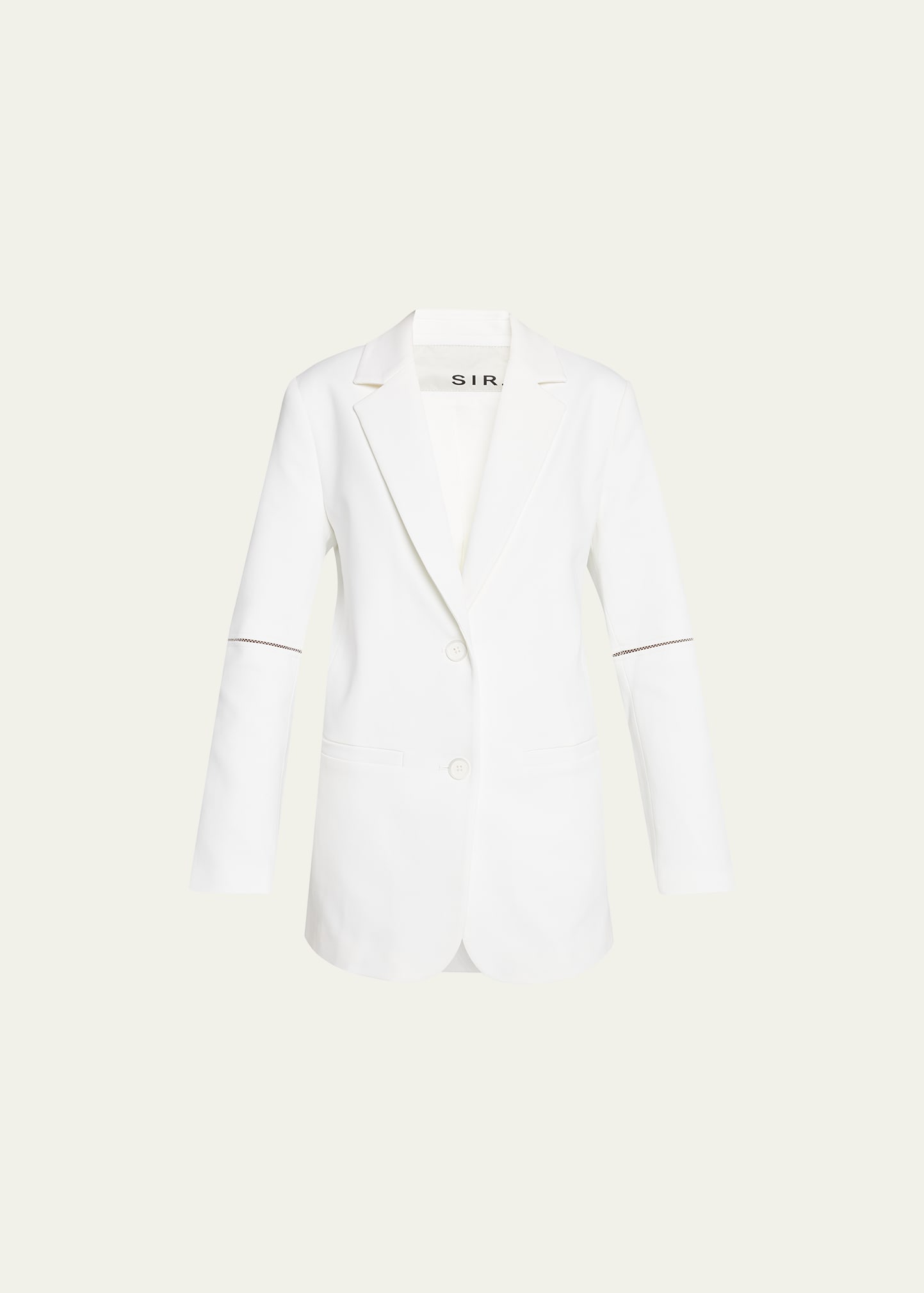 SIR "Esther" blazer with embroidered detailing Notched lapels Single-breasted front Long sleeves Front welt pockets Tailored fit Two-button closure Cotton/elastane Dry clean Imported