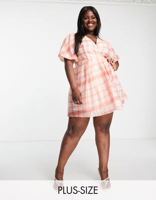 Plus-size dress by Ever New A round of applause for the dress Check design Wrap front Puff sleeves Tie waist Regular fit
