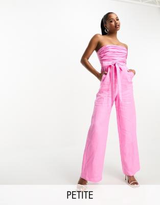 Petite by Ever New Petite Minimal effort, maximum payoff Bandeau style Tie detail Side pockets Shirred panel to back Back zip closure Wide leg Regular fit