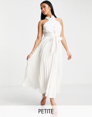 Petite dress by Ever New All dressed up Halterneck style Tie front Pleated skirt Regular fit