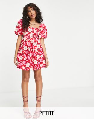 Ever New Petite open-back puff sleeve mini dress in red floral