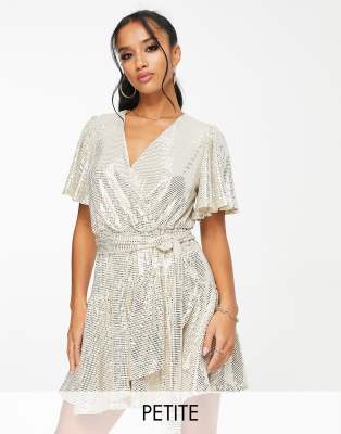 Petite by Ever New Petite Doing it for the glam Wrap front Frill sleeves Tie waist Regular fit