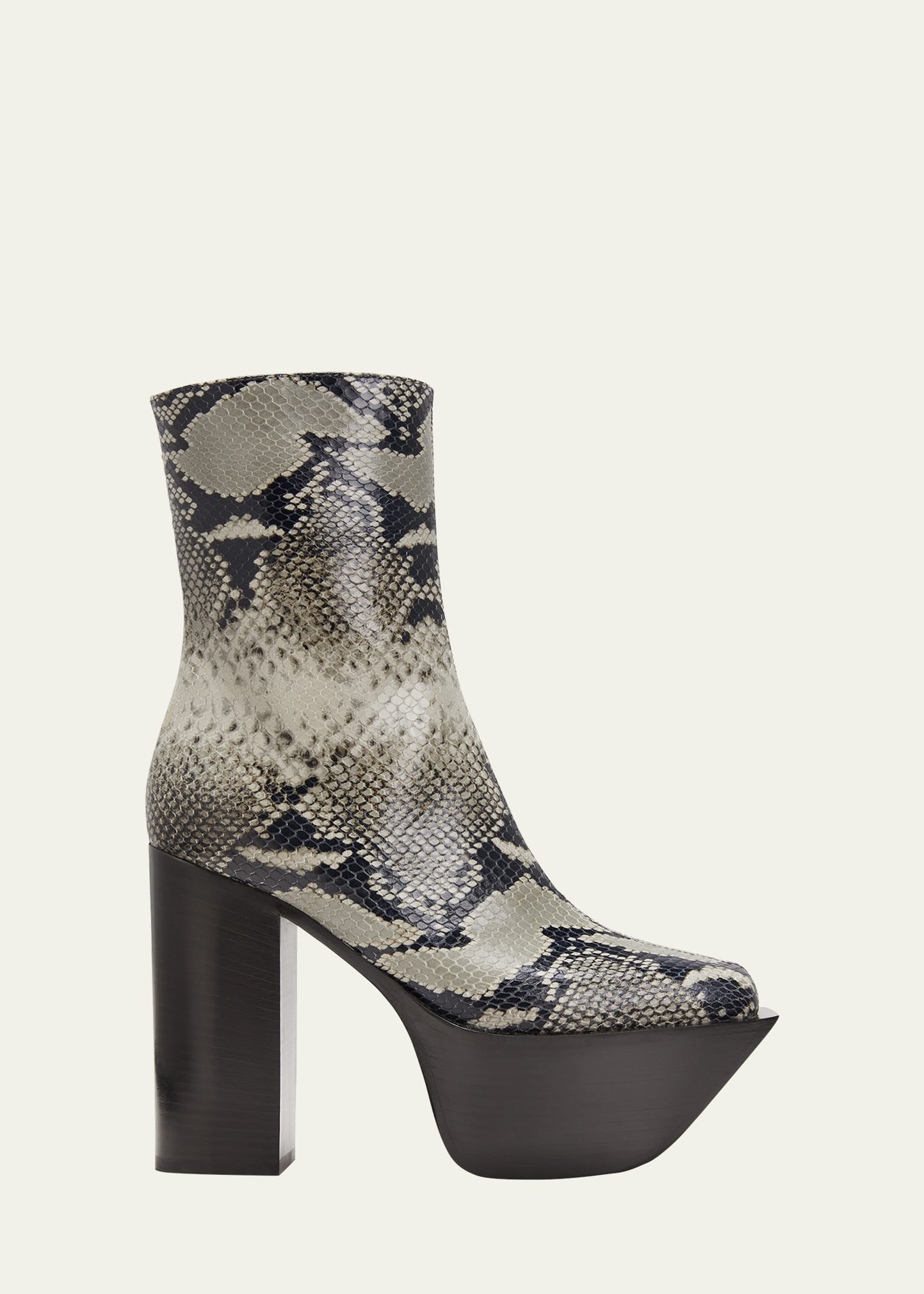 Peter Do "Everyday" python-embossed calf leather platform ankle boots 5.50 in / 140 mm block heel; 4.00 in / 100 mm platform Round toe with square frame Side zip eases dress Leather outsole Made in Italy
