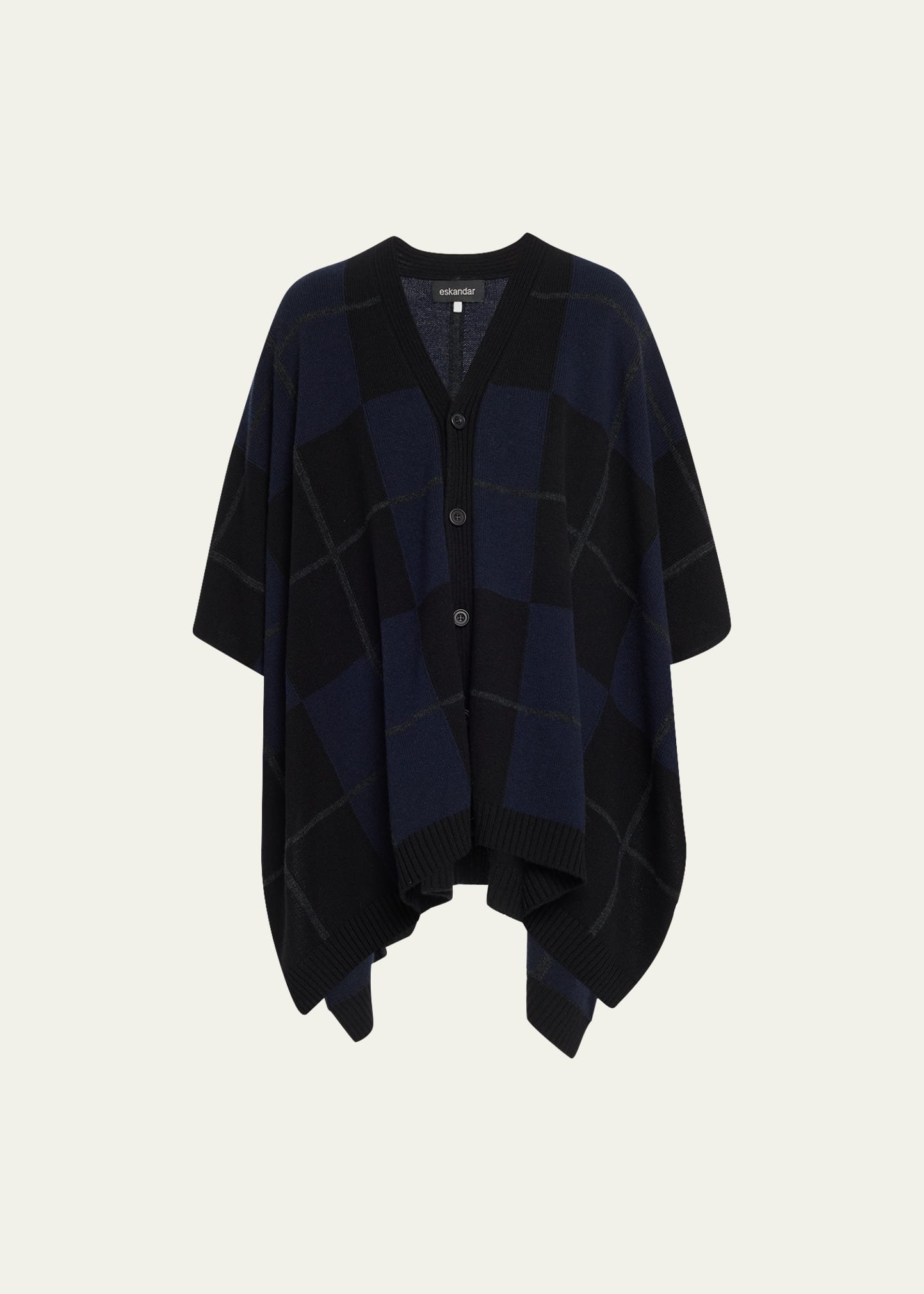 Eskandar tabard cardigan V neckline; button sewn Extra wide sleeves Long length Cashmere Made in United Kingdom