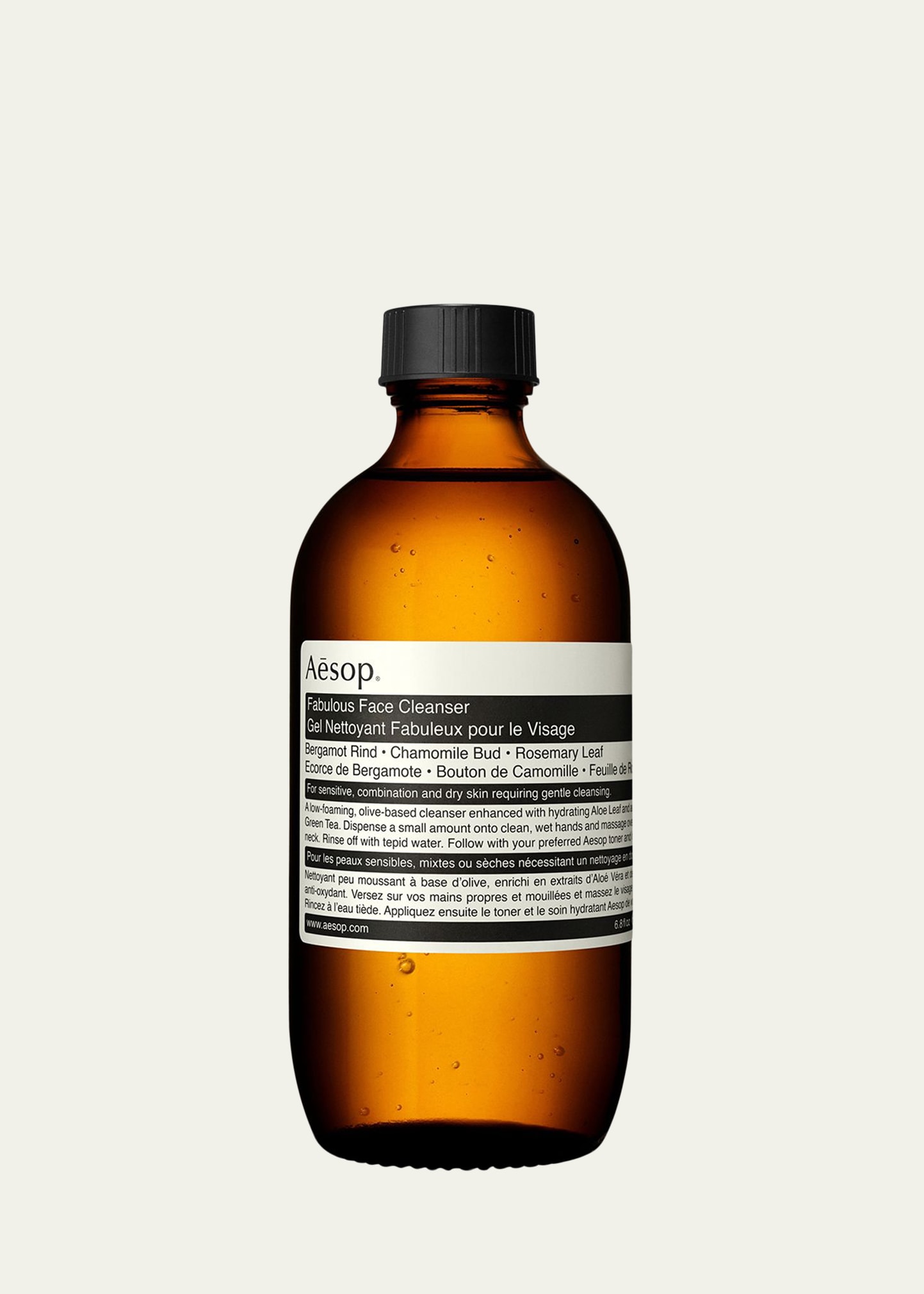 Aesop Fabulous Face Cleanser, 6.7 oz. A mild formulation boosted with purifying, hydrating and skin-calming botanicals that cleanse gently without stripping the skin. How to Use: Morning and evening, pour into clean hands and lather. Massage over face and neck, then rinse thoroughly with warm water. Suited for: Normal, combination and sensitive skin. Dry skin through warmer seasons Key Ingredients: Bergamot Rind, Chamomile Bud, Rosemary Leaf 6.7 oz./ 200 mL Designer About Aesop: A brand that.