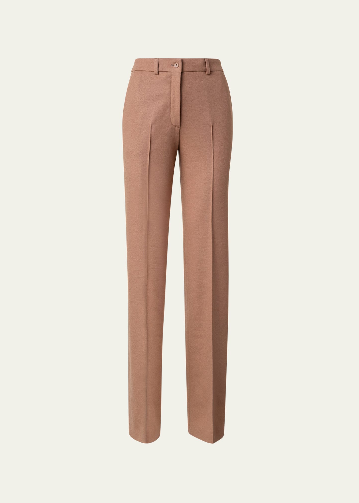 Akris punto "Faysa" pants cut from felted Italian wool Mid rise Creased front Slash side pockets; implied back pockets Straight legs Full length Front zip; belt loops Wool Made in Romania