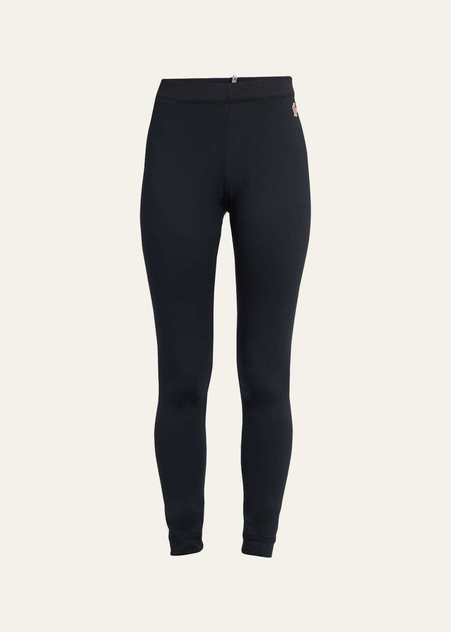 Moncler leggings feature a logo patch at the hip Mid-rise; sits high on the hip Banded waist Cropped at the ankle Second-skin fit Polyester/elastane Unlined Dry clean Made in Italy