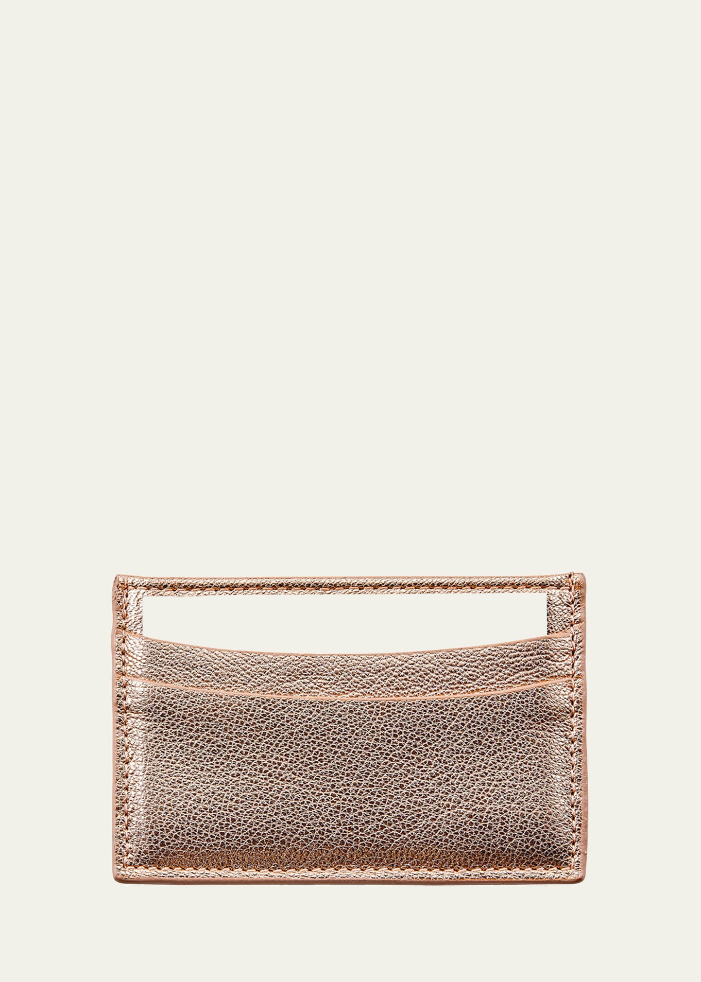Flat card case is made of goatskin leather with a metallic finish Three card slots Approx. 4"W x 2.9"T Made in USA from imported materials