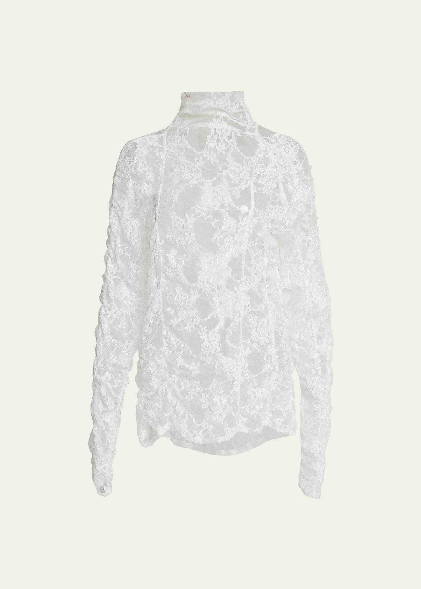 an Only Child stretch floral lace knit top Turtleneck neckline Long sleeves Relaxed fit Pullover style Polyester/rayon Made in USA