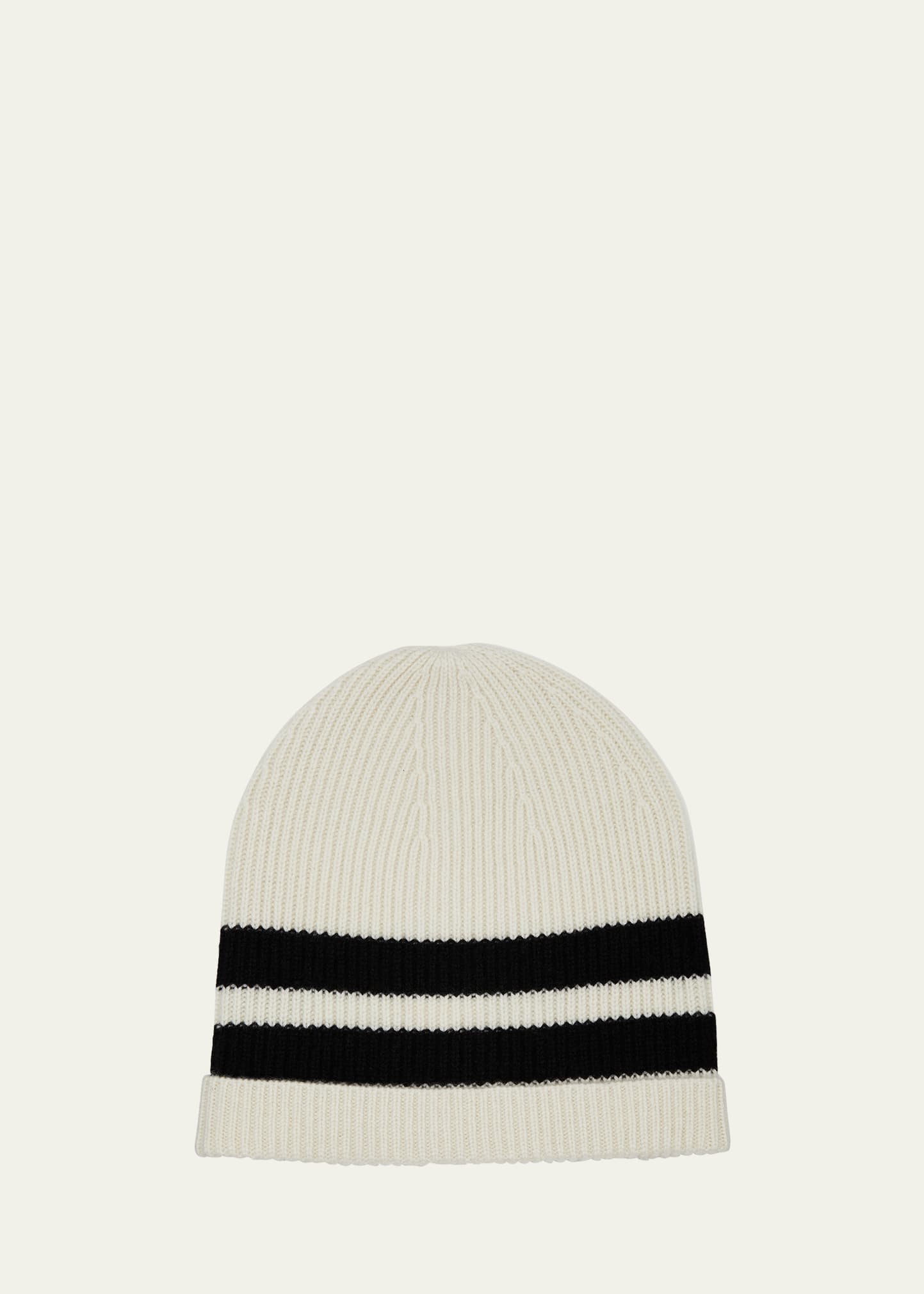 Lisa Yang "Florence" ribbed striped beanie in cashmere Round crown One size fits most Imported
