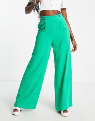 Flounce London satin high waist wide leg pants in bold green - part of a set