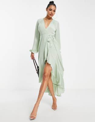 Dresses by Flounce London Love at first scroll V-neck Puff sleeves Tie waist Regular fit