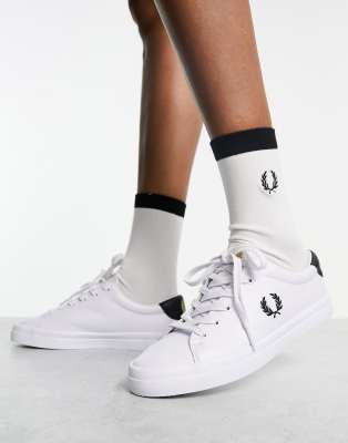 Shoes by Fred Perry Shoe game: won Low-profile design Lace-up fastening Padded tongue and cuff Signature Fred Perry branding Durable rubber outsole Textured grip tread