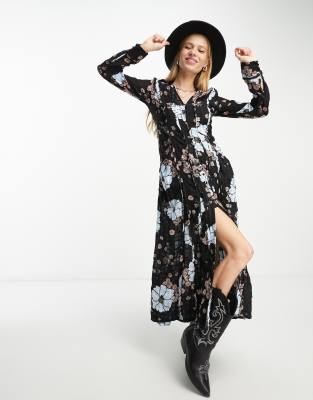Dresses by Free People All other dresses can go home Floral design Spread collar Button placket Oversized fit