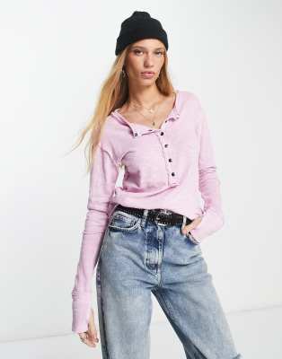 T-shirt by Free People Cart-worthy find Round neck Partial snap placket Thumbhole cuffs Slim fit