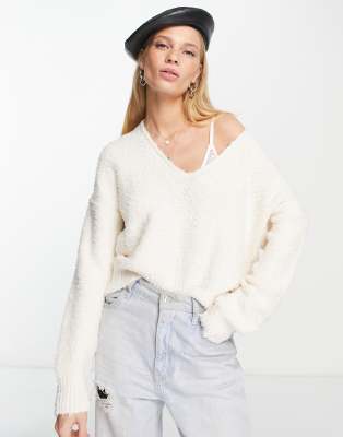 Free People Theo V Neck sweater in cream-White