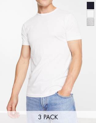 French Connection 3 pack t-shirts in gray black and white-Blue