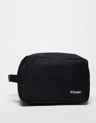 Wash bag by French Connection Add-to-bag material Zip-top closure Side handle Logo patch